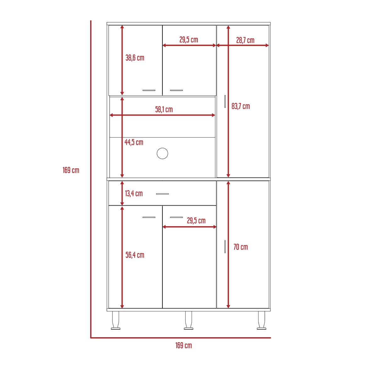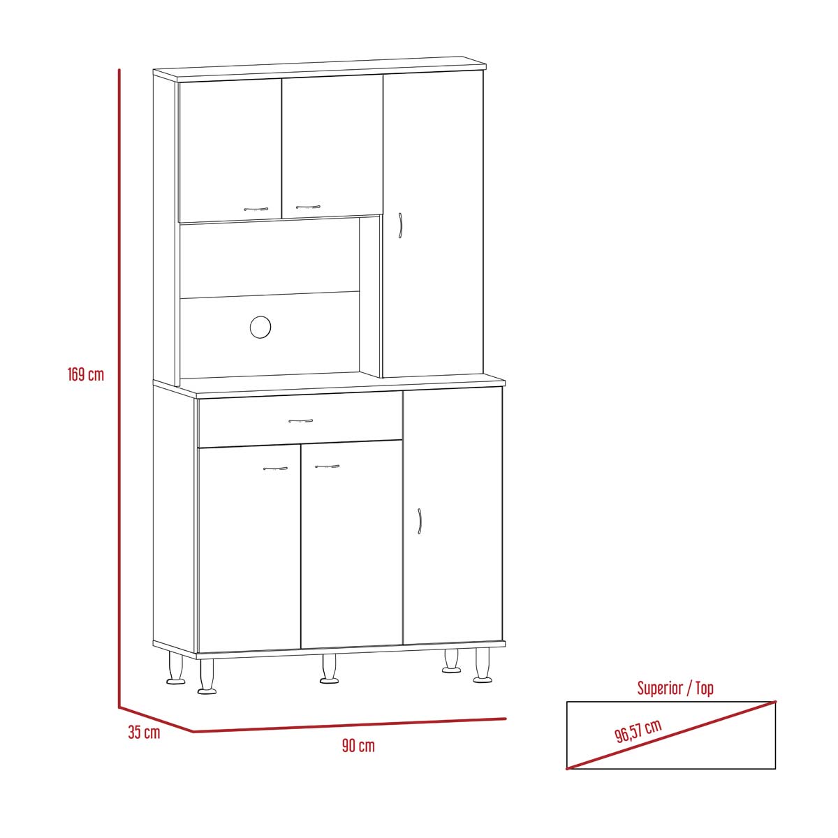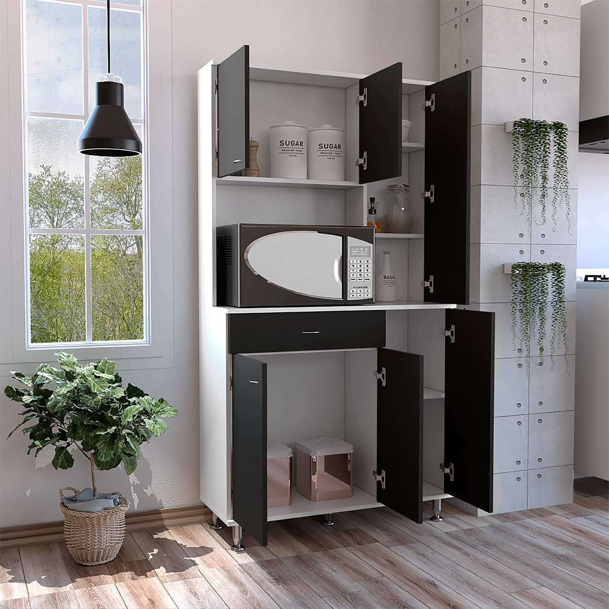 Un cajón y 6 puertas batientes con amplios espacios de almacenamiento