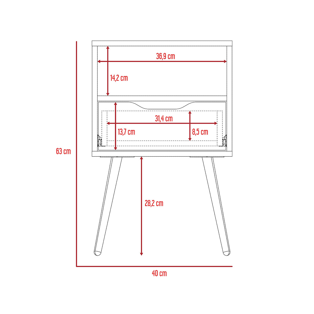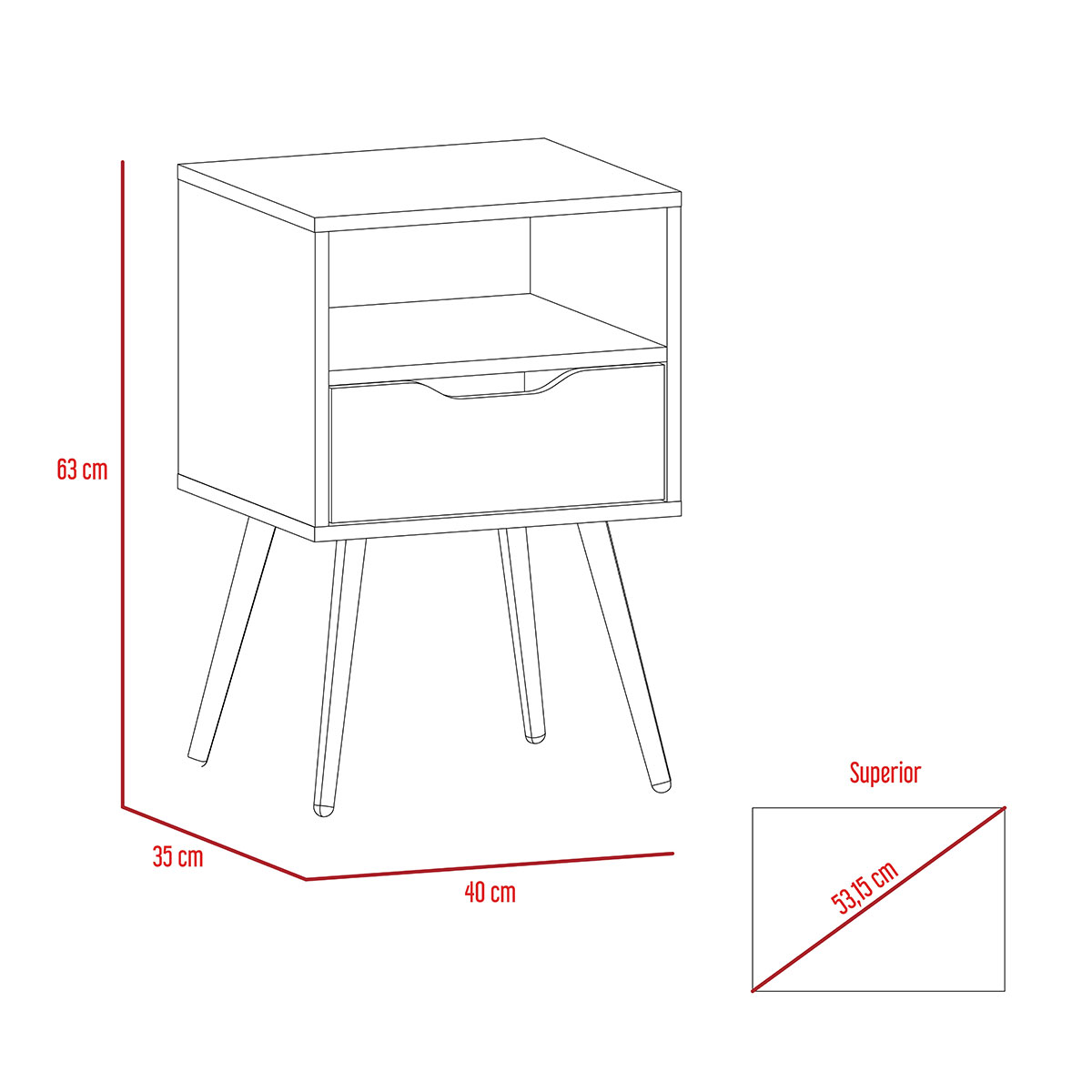 Combinación de colores Un cajón Patas de madera