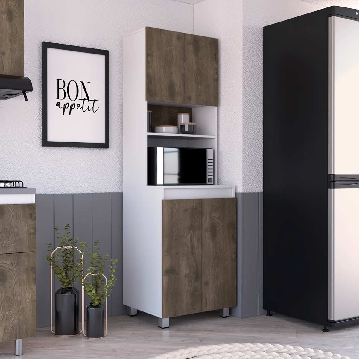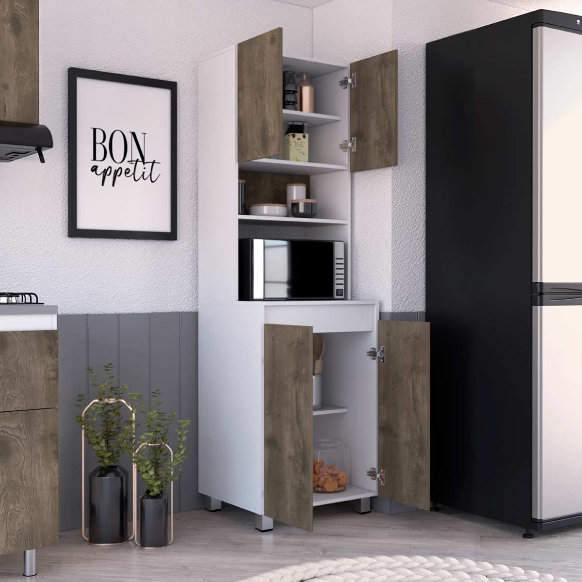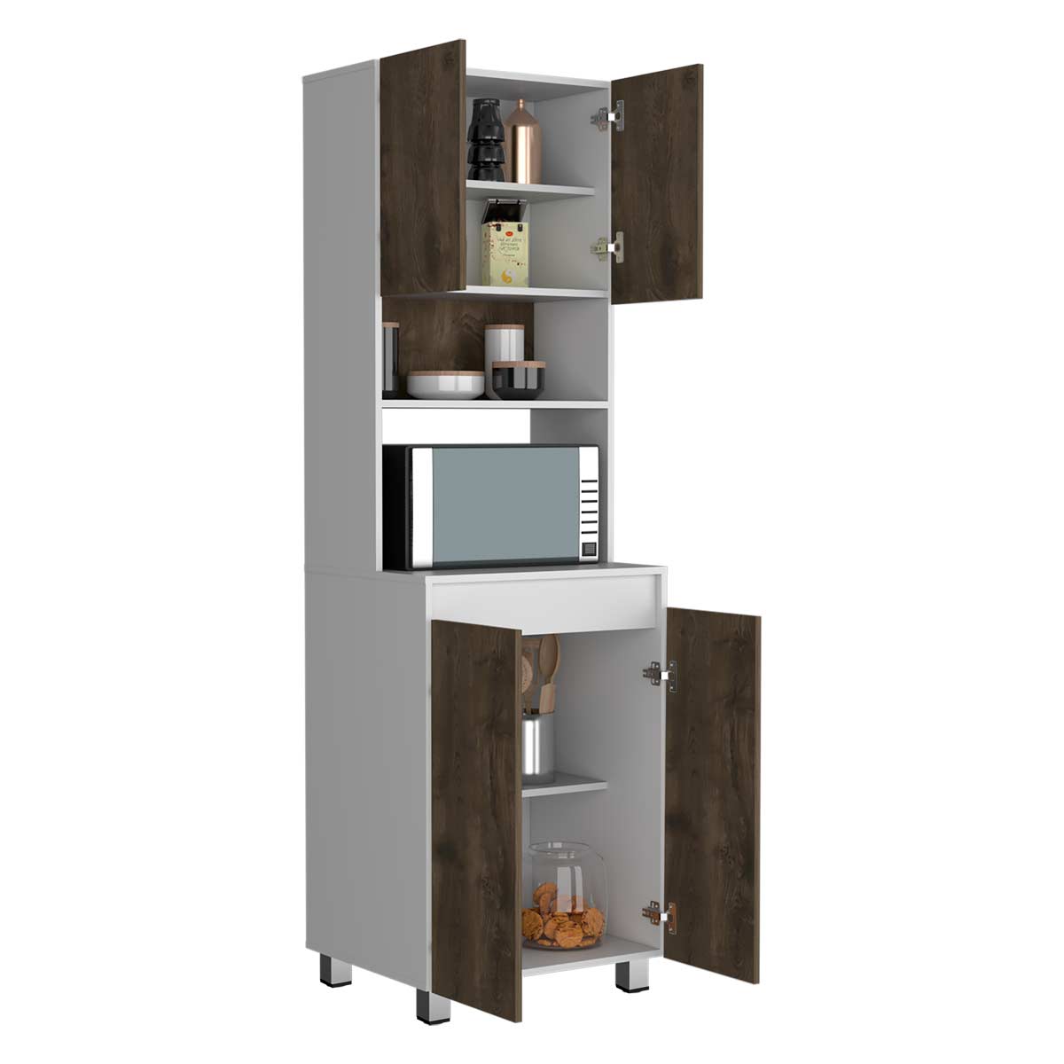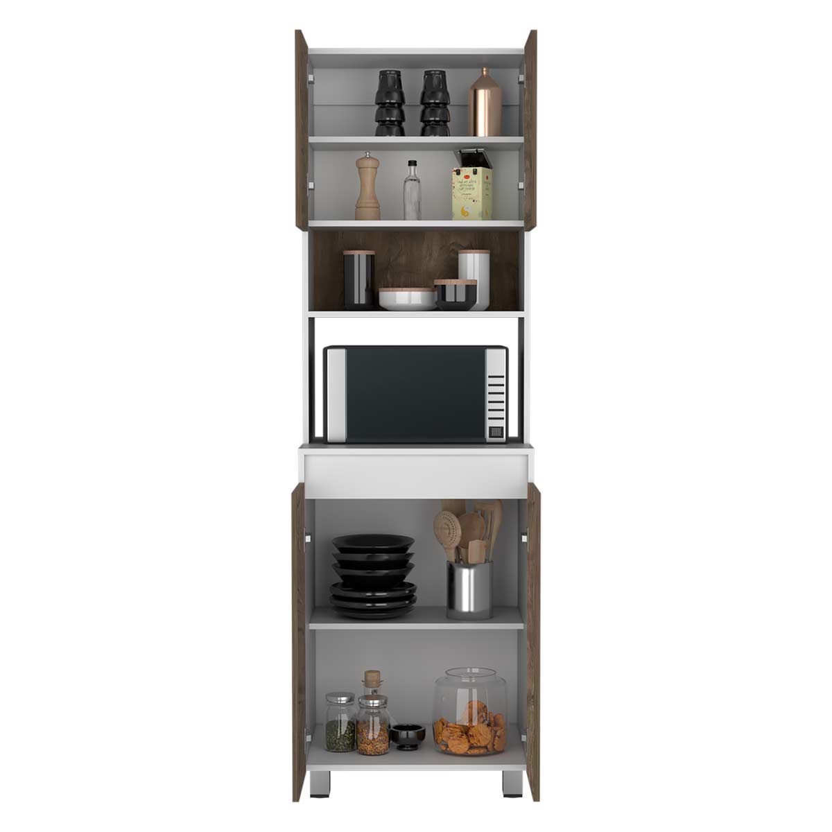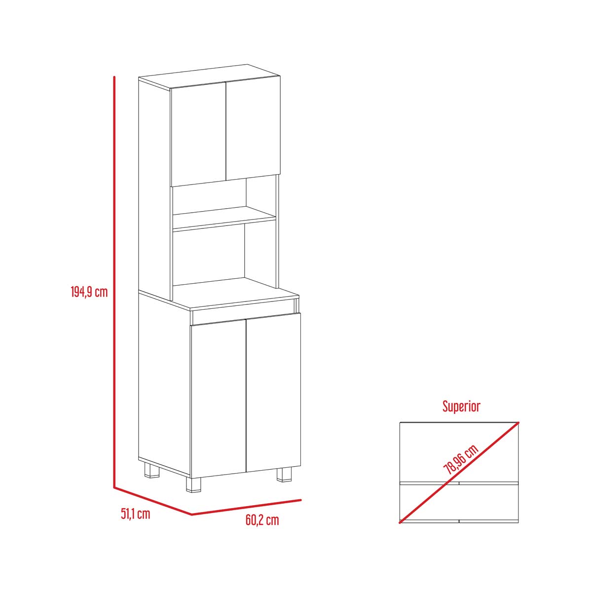 Compartimiento superior e inferior para guardar alimentos, utensilios de cocina y otros electrodomésticos