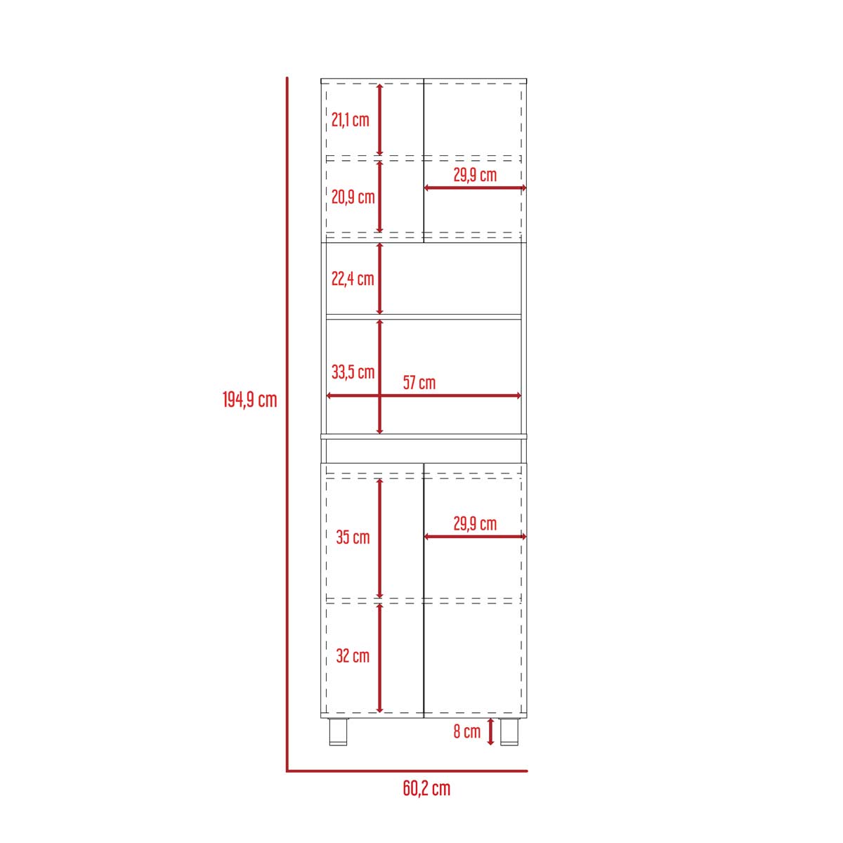 Espacio central para horno microondas de 56cm de ancho